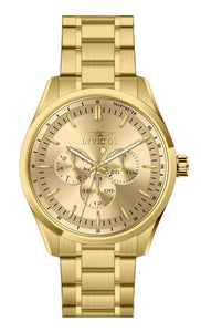 Band Material: Stainless Steel, Band Tone: Gold, Band Width: 22MM, Band Length: 177MM, Crown Type: Push, Case Material: Stainless Steel, Case Tone: Gold, Case Size [mm]: 44, Case Back: Solid, Material of Hands: Brass, Color of Hands: Gold,Luminous, Crystal Type: Mineral, Bezel Material: None, Dial Material: Brass, Dial Color: Gold, Dial Pattern: Sun-ray Finish .Purchasing these parts and having a non-authorized repair center open your watch voids all manufacturing warranties. Invicta cannot guarantee the quality standards of an altered timepiece, the standard 3-year limited warranty on Invicta timepieces shall be invalid if the timepiece is serviced at any time by an unauthorized repair center. This includes battery replacements, which must be done at an Invicta authorized repair center in order to maintain the eligibility of the warranty. Please follow the link below to learn more about Invicta's warranty.https://cdn.invictawatch.com/www/files/invicta-warranty-2018.pdf