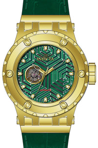Band Material: Stainless Steel,Leather, Band Tone: Green,Dark Grey, Band Width: 31MM, Band Length: 220MM, Crown Type: Screw Down, Case Material: Stainless Steel, Case Tone: Gold, Case Size [mm]: 52.0, Case Back: Exhibition, Material of Hands: Metal, Color of Hands: Gold,Luminous, Crystal Type: Flame Fusion, Bezel Material: Stainless Steel, Dial Material: Metal, Dial Color: Black,Green, Dial Pattern: Sun-ray Finish .Purchasing these parts and having a non-authorized repair center open your watch voids all manufacturing warranties. Invicta cannot guarantee the quality standards of an altered timepiece, the standard 3-year limited warranty on Invicta timepieces shall be invalid if the timepiece is serviced at any time by an unauthorized repair center. This includes battery replacements, which must be done at an Invicta authorized repair center in order to maintain the eligibility of the warranty. Please follow the link below to learn more about Invicta's warranty.https://cdn.invictawatch.com/www/files/invicta-warranty-2018.pdf