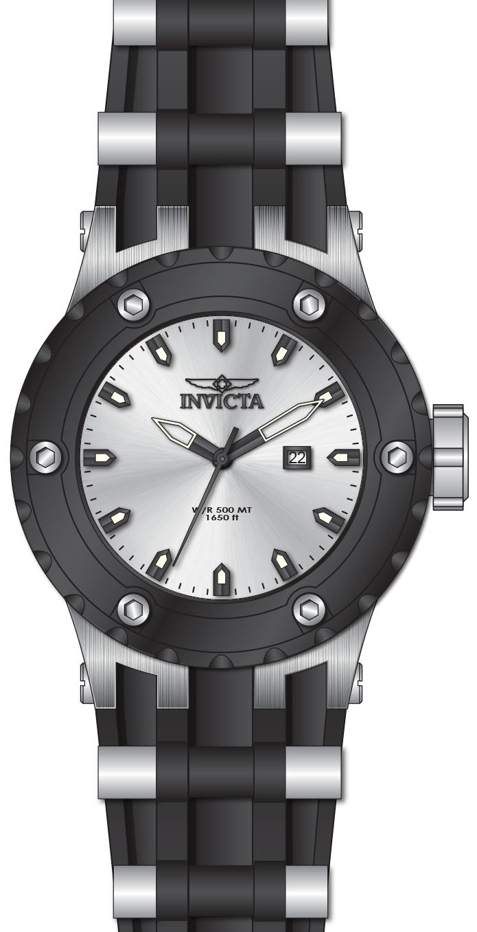 Band Material: Stainless Steel,Silicone, Band Tone: Steel,Black, Band Width: 31MM, Band Length: 210MM, Crown Type: Screw Down, Case Material: Stainless Steel, Case Tone: Black,Steel, Case Size [mm]: 52, Case Back: Solid, Material of Hands: Metal, Color of Hands: Luminous,Gunmetal, Crystal Type: Mineral, Bezel Material: Stainless Steel, Dial Material: Metal, Dial Color: Silver, Dial Pattern: Sun-ray Finish .Purchasing these parts and having a non-authorized repair center open your watch voids all manufacturing warranties. Invicta cannot guarantee the quality standards of an altered timepiece, the standard 3-year limited warranty on Invicta timepieces shall be invalid if the timepiece is serviced at any time by an unauthorized repair center. This includes battery replacements, which must be done at an Invicta authorized repair center in order to maintain the eligibility of the warranty. Please follow the link below to learn more about Invicta's warranty.https://cdn.invictawatch.com/www/files/invicta-warranty-2018.pdf