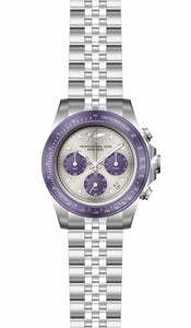 INVICTA Speedway Men 39.5mm Stainless Steel Purple + Steel Light Grey+Purple dial VD53 Quartz , Band Material: Stainless Steel, Band Tone: Steel, Band Size [mm]: 20, Band Length [mm]: 200, Buckle Type: Fold over safety , Crown Type : Screw Down, Case Material : Stainless Steel, Case Tone : Purple,Steel, Case Size (mm) : 39.5, Case Back : Solid, Material of Hands : Metal, Color of Hands : Silver,Luminous, Crystal Type : Mineral, Bezel Material : Stainless Steel, Dial Material : Metal, Dial Color : Light Grey,Purple, Dial Pattern : Sun-ray Finish .Purchasing these parts and having a non-authorized repair center open your watch voids all manufacturing warranties. Invicta cannot guarantee the quality standards of an altered timepiece, the standard 3-year limited warranty on Invicta timepieces shall be invalid if the timepiece is serviced at any time by an unauthorized repair center. This includes battery replacements, which must be done at an Invicta authorized repair center in order to maintain the eligibility of the warranty. Please follow the link below to learn more about Invicta's warranty.https://cdn.invictawatch.com/www/files/invicta-warranty-2018.pdf