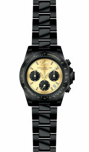INVICTA Speedway Men 39.5mm Stainless Steel Black Black+Gold dial VD53 Quartz , Band Material: Stainless Steel, Band Tone: Black, Band Size [mm]: 20, Band Length [mm]: 205, Buckle Type: Fold over safety , Crown Type : Screw Down, Case Material : Stainless Steel, Case Tone : Black, Case Size (mm) : 39.5, Case Back : Solid, Material of Hands : Metal, Color of Hands : Gold,Luminous, Crystal Type : Mineral, Bezel Material : Stainless Steel, Dial Material : Metal, Dial Color : Black,Gold, Dial Pattern : Sun-ray Finish .Purchasing these parts and having a non-authorized repair center open your watch voids all manufacturing warranties. Invicta cannot guarantee the quality standards of an altered timepiece, the standard 3-year limited warranty on Invicta timepieces shall be invalid if the timepiece is serviced at any time by an unauthorized repair center. This includes battery replacements, which must be done at an Invicta authorized repair center in order to maintain the eligibility of the warranty. Please follow the link below to learn more about Invicta's warranty.https://cdn.invictawatch.com/www/files/invicta-warranty-2018.pdf