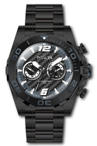 Band Material: Stainless Steel, Band Tone: Black, Band Width: 24MM, Band Length: 185MM, Crown Type: Push, Case Material: Stainless Steel, Case Tone: Black, Case Size [mm]: 48, Case Back: Solid, Material of Hands: Metal, Color of Hands: Silver,Blue, Crystal Type: Flame Fusion, Bezel Material: Stainless Steel,Aluminum, Dial Material: Carbon Fiber, Dial Color: Black .Purchasing these parts and having a non-authorized repair center open your watch voids all manufacturing warranties. Invicta cannot guarantee the quality standards of an altered timepiece, the standard 3-year limited warranty on Invicta timepieces shall be invalid if the timepiece is serviced at any time by an unauthorized repair center. This includes battery replacements, which must be done at an Invicta authorized repair center in order to maintain the eligibility of the warranty. Please follow the link below to learn more about Invicta's warranty.https://cdn.invictawatch.com/www/files/invicta-warranty-2018.pdf