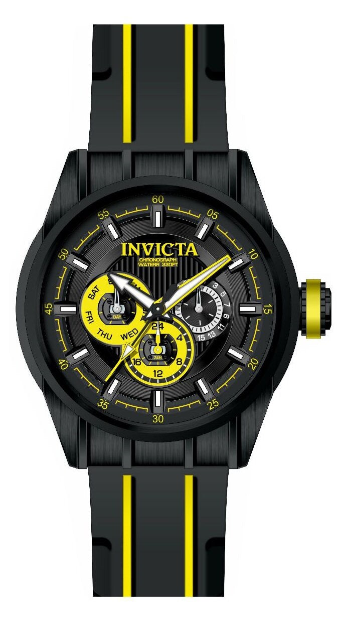 Band Material: Silicone, Band Tone: Black,Yellow, Band Width: 24MM, Band Length: 217MM, Crown Type: Push, Case Material: Stainless Steel, Case Tone: Black, Case Size [mm]: 48, Case Back: Solid, Material of Hands: Brass, Color of Hands: Black,Silver,Yellow,Luminous, Crystal Type: Mineral, Bezel Material: Stainless Steel, Dial Material: Brass, Dial Color: Black,Yellow, Dial Pattern: Embossed pattern .Purchasing these parts and having a non-authorized repair center open your watch voids all manufacturing warranties. Invicta cannot guarantee the quality standards of an altered timepiece, the standard 3-year limited warranty on Invicta timepieces shall be invalid if the timepiece is serviced at any time by an unauthorized repair center. This includes battery replacements, which must be done at an Invicta authorized repair center in order to maintain the eligibility of the warranty. Please follow the link below to learn more about Invicta's warranty.https://cdn.invictawatch.com/www/files/invicta-warranty-2018.pdf