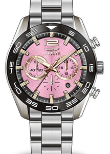 Band Material: Stainless Steel, Band Tone: Steel, Band Width: 22MM, Band Length: 215MM, Crown Type: Push, Case Material: Stainless Steel, Case Tone: Black,Steel, Case Size [mm]: 46.50, Material of Hands: Metal, Color of Hands: Rose Gold,Luminous, Crystal Type: Mineral, Bezel Material: Stainless Steel, Dial Material: Metal, Dial Color: Pink, Dial Pattern: Sun-ray Finish .Purchasing these parts and having a non-authorized repair center open your watch voids all manufacturing warranties. Invicta cannot guarantee the quality standards of an altered timepiece, the standard 3-year limited warranty on Invicta timepieces shall be invalid if the timepiece is serviced at any time by an unauthorized repair center. This includes battery replacements, which must be done at an Invicta authorized repair center in order to maintain the eligibility of the warranty. Please follow the link below to learn more about Invicta's warranty.https://cdn.invictawatch.com/www/files/invicta-warranty-2018.pdf
