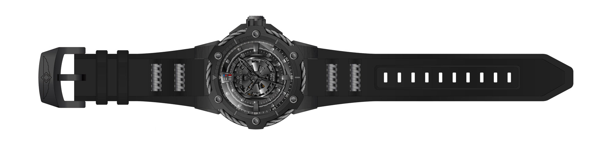 Individual Spare PARTS For Invicta Star Wars 26123, Band Material: Silicone, Stainless Steel, Band Tone: Black, Gunmetal, Band Size (mm): 30, Band Length (mm): 205, Buckle Type: Regular, Clasp Type:, Crown Type Push, Case Material Stainless Steel, Case Tone Black, Case Size (mm) 53, Case Back Exhibition, Material of Hands Metal, Color of Hands Black, Crystal Type Flame Fusion, Bezel Material Stainless Steel, Cable, Dial Material Metal, Dial Color Grey, Dial Pattern TexturedPurchasing these parts and having a non-authorized repair center open your watch voids all manufacturing warranties. Invicta cannot guarantee the quality standards of an altered timepiece, the standard 3-year limited warranty on Invicta timepieces shall be invalid if the timepiece is serviced at any time by an unauthorized repair center. This includes battery replacements, which must be done at an Invicta authorized repair center in order to maintain the eligibility of the warranty. Please follow the link below to learn more about Invicta's warranty.https://cdn.invictawatch.com/www/files/invicta-warranty-2018.pdf