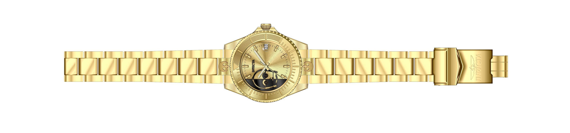 Individual Spare PARTS For Invicta Star Wars 26167, Band Material: Stainless Steel, Band Tone: Gold, Band Size in mm: 18, Band length in mm: 210, Buckle Type: Diver, Clasp Type: Deployment, Safety, Crown Type Screw Down, Case Material Stainless Steel, Case Tone Gold, Case Size (mm) 38, Case Back Exhibition, Material of Hands Metal, Color of Hands Gold, Luminous, Crystal Type Mineral, Bezel Material Stainless Steel, Dial Material Metal, Dial Color Black, Gold, Dial Pattern SunrayPurchasing these parts and having a non-authorized repair center open your watch voids all manufacturing warranties. Invicta cannot guarantee the quality standards of an altered timepiece, the standard 3-year limited warranty on Invicta timepieces shall be invalid if the timepiece is serviced at any time by an unauthorized repair center. This includes battery replacements, which must be done at an Invicta authorized repair center in order to maintain the eligibility of the warranty. Please follow the link below to learn more about Invicta's warranty.https://cdn.invictawatch.com/www/files/invicta-warranty-2018.pdf