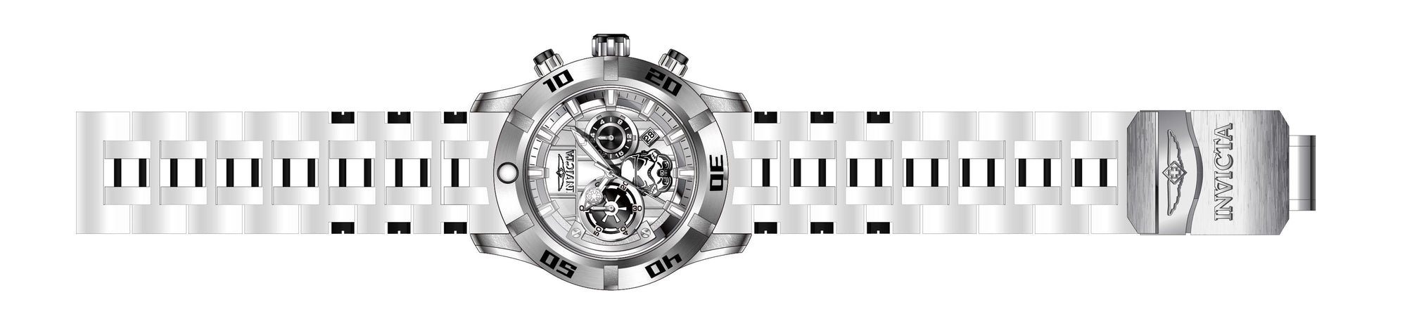 Individual Spare PARTS For Invicta Star Wars 26552, Band Material: Polyurethane, Stainless Steel, Band Tone: White, Black, Band Size (mm): 26, Band Length (mm): 180, Buckle Type: Regular, Clasp Type: Regular, Crown Type Push, Case Material Stainless Steel, Case Tone Steel, Case Size (mm) 50, Case Back Exhibition, Material of Hands Metal, Color of Hands Silver, Crystal Type Flame Fusion, Bezel Material Stainless Steel, Dial Material Metal, Dial Color Silver, Dial Pattern TexturedPurchasing these parts and having a non-authorized repair center open your watch voids all manufacturing warranties. Invicta cannot guarantee the quality standards of an altered timepiece, the standard 3-year limited warranty on Invicta timepieces shall be invalid if the timepiece is serviced at any time by an unauthorized repair center. This includes battery replacements, which must be done at an Invicta authorized repair center in order to maintain the eligibility of the warranty. Please follow the link below to learn more about Invicta's warranty.https://cdn.invictawatch.com/www/files/invicta-warranty-2018.pdf