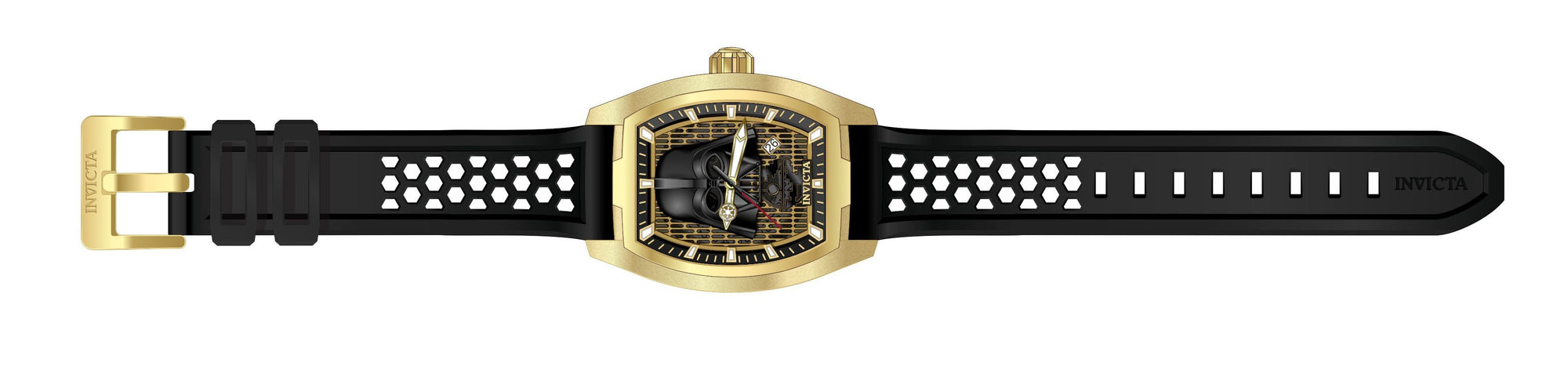 Individual Spare PARTS For Invicta Star Wars 26941, Band Material: Silicone, Band Tone: Black, Band Size (mm): 22, Band Length (mm): 215, Buckle Type: Regular, Clasp Type: Regular, Crown Type Push, Case Material Stainless Steel, Case Tone Gold, Case Size (mm) 42, Case Back Exhibition, Material of Hands Metal, Color of Hands Gold, Luminous, Crystal Type Flame Fusion, Bezel Material None, Dial Material Metal, Dial Color Black, Gold, Dial Pattern Double LayeredPurchasing these parts and having a non-authorized repair center open your watch voids all manufacturing warranties. Invicta cannot guarantee the quality standards of an altered timepiece, the standard 3-year limited warranty on Invicta timepieces shall be invalid if the timepiece is serviced at any time by an unauthorized repair center. This includes battery replacements, which must be done at an Invicta authorized repair center in order to maintain the eligibility of the warranty. Please follow the link below to learn more about Invicta's warranty.https://cdn.invictawatch.com/www/files/invicta-warranty-2018.pdf