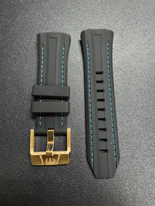 Band Material: Silicone, Band Tone: Black, Blue, Band Size: 29mm, Band Length: 210mm, Clasp Type: Regular, Clasp Tone: Gold Please note that bands do not ship with spring bars or T bars. If you need these parts, please add them to your cart with the corresponding part sku.