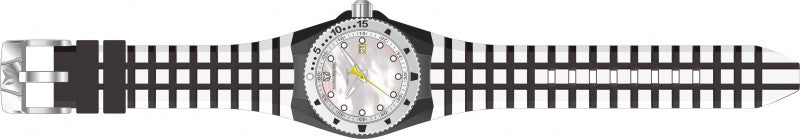 Band Material: Silicone, Band Tone: Black, White, Band Size: 24mm, Band Length: 200mm, Clasp Type: Regular, Clasp Tone: Stainless Steel Please note that bands do not ship with spring bars or T bars. If you need these parts, please add them to your cart with the corresponding part sku.