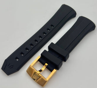 Band Material: Silicone, Band Tone: White, Band Size: 24mm, Band Length: 205mm, Clasp Type: Regular, Clasp Tone: Gold Please note that bands do not ship with spring bars or T bars. If you need these parts, please add them to your cart with the corresponding part sku.
