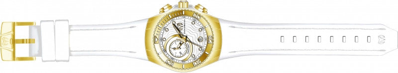 Band Material: Silicone, Band Tone: White, Band Size: 26mm, Band Length: 185mm, Clasp Type: Regular, Clasp Tone: Gold Please note that bands do not ship with spring bars or T bars. If you need these parts, please add them to your cart with the corresponding part sku.