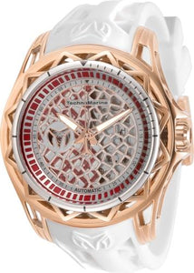 , Crown Type Screw Down, Case Material Stainless Steel, Aluminum, Case Tone Rose Gold, Silver, Case Size (mm) 44, Case Back Exhibition, Material of Hands Metal, Color of Hands Luminous, Rose Gold, Crystal Type Mineral, Bezel Material Aluminum, Dial Material Metal, Dial Color Red, Rose Gold, Silver, Dial Pattern Sunray