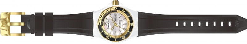Band Material: Silicone, Band Tone: Black, Band Size: 26mm, Band Length: 180mm, Clasp Type: Regular, Clasp Tone: Gold Please note that bands do not ship with spring bars or T bars. If you need these parts, please add them to your cart with the corresponding part sku.