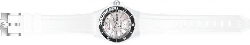 Band Material: Silicone, Band Tone: White, Band Size: 26mm, Band Length: 180mm, Clasp Type: Regular, Clasp Tone: Stainless Steel Please note that bands do not ship with spring bars or T bars. If you need these parts, please add them to your cart with the corresponding part sku.