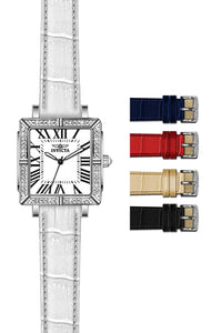Band For Lady Invicta Wildflower 14433, Band Material Leather, Band Color White, Blue, Red, Tan, Black. Band Width 16 MM, Band Length 223 MM, Buckle Type Regular, Clasp Type Regular. Please note that bands do not ship with spring bars or T bars. If you need these parts, please add them to your cart with the corresponding part sku.