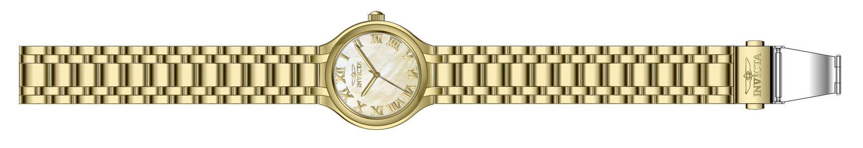 Band Material: Stainless Steel, Band Tone: Gold, Band Width: 16MM, Band Length: 171MM, Crown Type: Push, Case Material: Stainless Steel, Case Tone: Gold, Case Size [mm]: 32, Color of Hands: Gold, Crystal Type: Mineral, Bezel Material: None, Dial Material: Mother of Pearl, Dial Color: Gold .Purchasing these parts and having a non-authorized repair center open your watch voids all manufacturing warranties. Invicta cannot guarantee the quality standards of an altered timepiece, the standard 3-year limited warranty on Invicta timepieces shall be invalid if the timepiece is serviced at any time by an unauthorized repair center. This includes battery replacements, which must be done at an Invicta authorized repair center in order to maintain the eligibility of the warranty. Please follow the link below to learn more about Invicta's warranty.https://cdn.invictawatch.com/www/files/invicta-warranty-2018.pdf