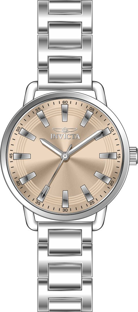 Band Material: Stainless Steel, Band Tone: Steel, Band Width: 16MM, Band Length: 165MM, Crown Type: Push, Case Material: Stainless Steel, Case Tone: Steel, Case Size [mm]: 38, Crystal Type: Flame Fusion, Dial Material: Brass, Dial Color: Light Pink .Purchasing these parts and having a non-authorized repair center open your watch voids all manufacturing warranties. Invicta cannot guarantee the quality standards of an altered timepiece, the standard 3-year limited warranty on Invicta timepieces shall be invalid if the timepiece is serviced at any time by an unauthorized repair center. This includes battery replacements, which must be done at an Invicta authorized repair center in order to maintain the eligibility of the warranty. Please follow the link below to learn more about Invicta's warranty.https://cdn.invictawatch.com/www/files/invicta-warranty-2018.pdf