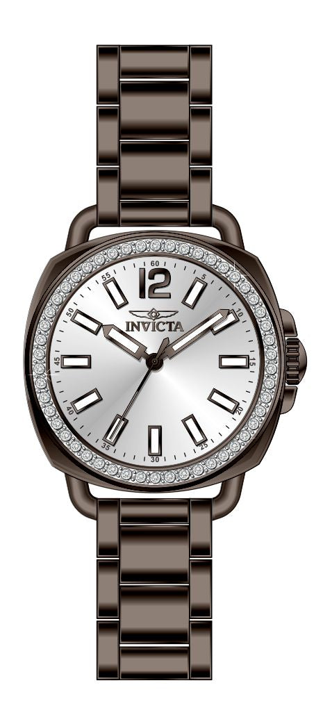 Band Material: Stainless Steel, Band Tone: Brown, Band Width: 14MM, Band Length: 168MM, Crown Type: Push, Case Material: Stainless Steel, Case Tone: Brown, Case Size [mm]: 32, Crystal Type: Flame Fusion, Dial Material: Brass, Dial Color: Silver .Purchasing these parts and having a non-authorized repair center open your watch voids all manufacturing warranties. Invicta cannot guarantee the quality standards of an altered timepiece, the standard 3-year limited warranty on Invicta timepieces shall be invalid if the timepiece is serviced at any time by an unauthorized repair center. This includes battery replacements, which must be done at an Invicta authorized repair center in order to maintain the eligibility of the warranty. Please follow the link below to learn more about Invicta's warranty.https://cdn.invictawatch.com/www/files/invicta-warranty-2018.pdf