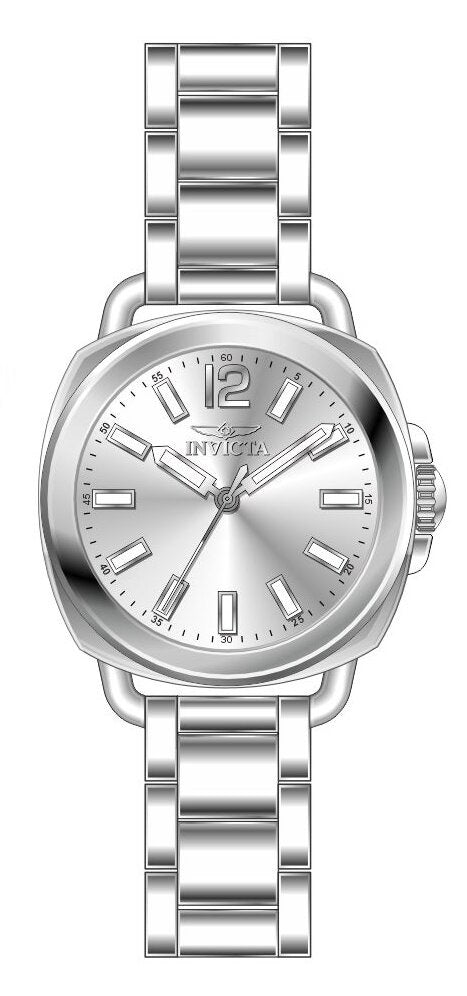 Band Material: Stainless Steel, Band Tone: Steel, Band Width: 32MM, Band Length: 168MM, Crown Type: Push, Case Material: Stainless Steel, Case Tone: Steel, Case Size [mm]: 32, Case Back: Solid, Material of Hands: Brass, Color of Hands: Silver,Luminous, Crystal Type: Flame Fusion, Bezel Material: None, Dial Material: Brass, Dial Color: Silver, Dial Pattern: Sun-ray Finish .Purchasing these parts and having a non-authorized repair center open your watch voids all manufacturing warranties. Invicta cannot guarantee the quality standards of an altered timepiece, the standard 3-year limited warranty on Invicta timepieces shall be invalid if the timepiece is serviced at any time by an unauthorized repair center. This includes battery replacements, which must be done at an Invicta authorized repair center in order to maintain the eligibility of the warranty. Please follow the link below to learn more about Invicta's warranty.https://cdn.invictawatch.com/www/files/invicta-warranty-2018.pdf