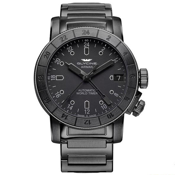 Band for Glycine Airman GL0169, Band Material: Stainless Steel, Band Color: Black, Band Width: 24, Band Length: 196.3, Buckle Type: Butterfly