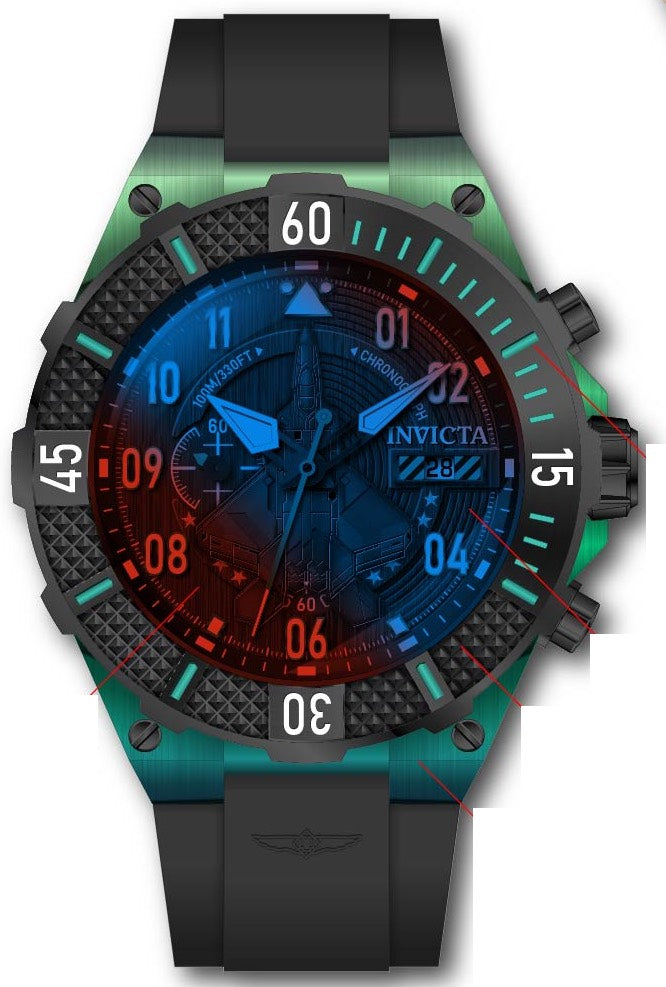 ["Aviator","Band_Size_26MM","Green","I39901","invicta_itg","Iridescent","Men","PF17635","Products_2021","Quartz","Stainless Steel","Uni-directional","White"]