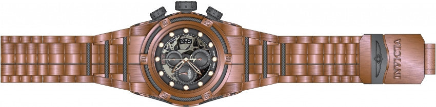 Band For Men Invicta Bolt 16675, Band Material Stainless Steel, Band Color Rose Gold, Gunmetal, Band Width 36.8 MM, Band Length 210 MM, Buckle Type Diver, Clasp Type Deployment, Safety. Please note that bands do not ship with spring bars or T bars. If you need these parts, please add them to your cart with the corresponding part sku.
