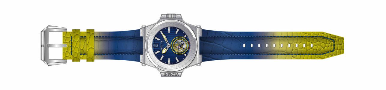 Band Material: Leather, Band Tone: Blue,Yellow,Green, Band Size [mm]: 32, Band Length [mm]: 210, Buckle Type: Buckle . Please note that bands do not ship with spring bars or T bars. If you need these parts, please add them to your cart with the corresponding part sku.