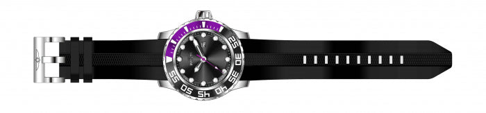 Band for Invicta Pro Diver 23474, Band Material: Silicone, Band Color: Black, Band Size (in mm): 26, Band Length (in mm): 190, Buckle Type: Regular, Clasp Type: Regular. Please note that bands do not ship with spring bars or T bars. If you need these parts, please add them to your cart with the corresponding part sku.