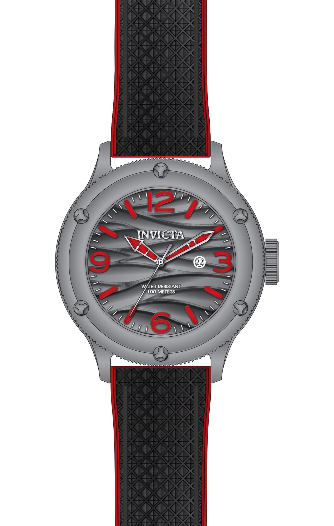 Band Material: Silicone, Band Tone: Black,Red, Band Width: 24MM, Band Length: 200MM, Buckle Type: Buckle, Clasp Type: Buckle, Please note that bands do not ship with spring bars or T bars. If you need these parts, please add them to your cart with the corresponding part sku.