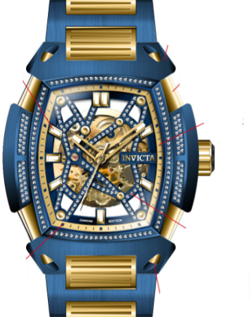 Band Material: Stainless Steel, Band Tone: Gold,Blue, Band Size [mm]: 31, Band Length [mm]: 189, Buckle Type: Fold over safety . Please note that bands do not ship with spring bars or T bars. If you need these parts, please add them to your cart with the corresponding part sku.