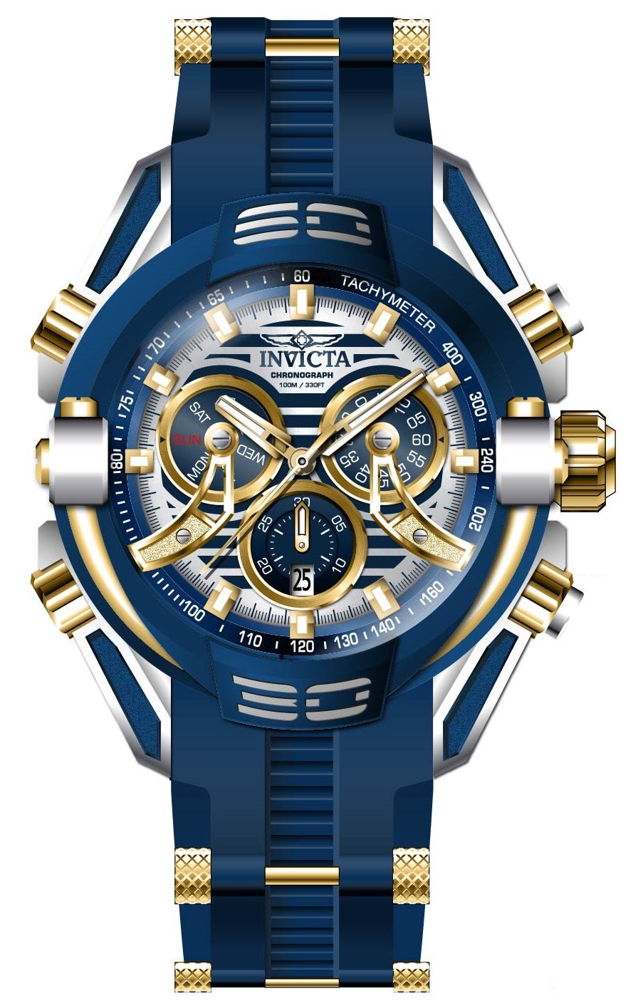 Band Material: Stainless Steel,Silicone, Band Tone: Gold,Blue, Band Size [mm]: 26, Band Length [mm]: 190, Buckle Type: Buckle . Please note that bands do not ship with spring bars or T bars. If you need these parts, please add them to your cart with the corresponding part sku.