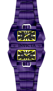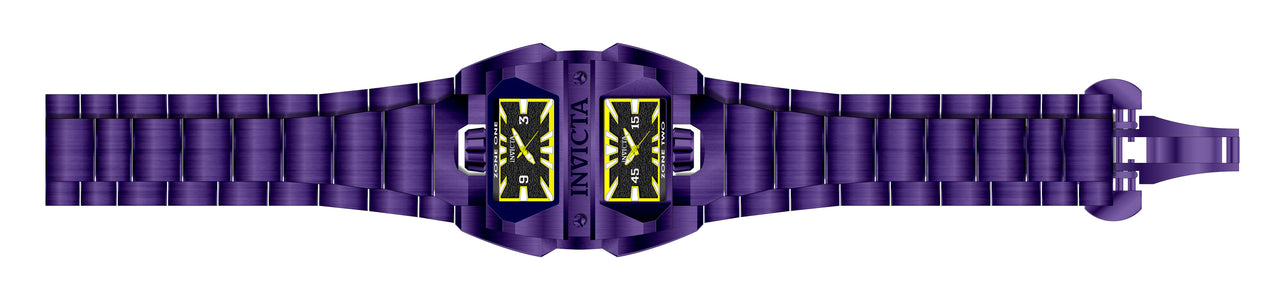 INVICTA Akula Men 50mm Stainless Steel Purple Black dial 763 Quartz , Band Material: Stainless Steel, Band Tone: Purple, Band Size [mm]: 34, Band Length [mm]: 220, Buckle Type: Butterfly push button , Crown Type : Push, Case Material : Stainless Steel, Case Tone : Purple, Case Size (mm) : 50, Case Back : Solid, Material of Hands : Metal, Color of Hands : Yellow,Luminous, Crystal Type : Flame Fusion, Bezel Material : None, Dial Material : Metal, Dial Color : Black, Dial Pattern : Textured Pattern .Purchasing these parts and having a non-authorized repair center open your watch voids all manufacturing warranties. Invicta cannot guarantee the quality standards of an altered timepiece, the standard 3-year limited warranty on Invicta timepieces shall be invalid if the timepiece is serviced at any time by an unauthorized repair center. This includes battery replacements, which must be done at an Invicta authorized repair center in order to maintain the eligibility of the warranty. Please follow the link below to learn more about Invicta's warranty.https://cdn.invictawatch.com/www/files/invicta-warranty-2018.pdf