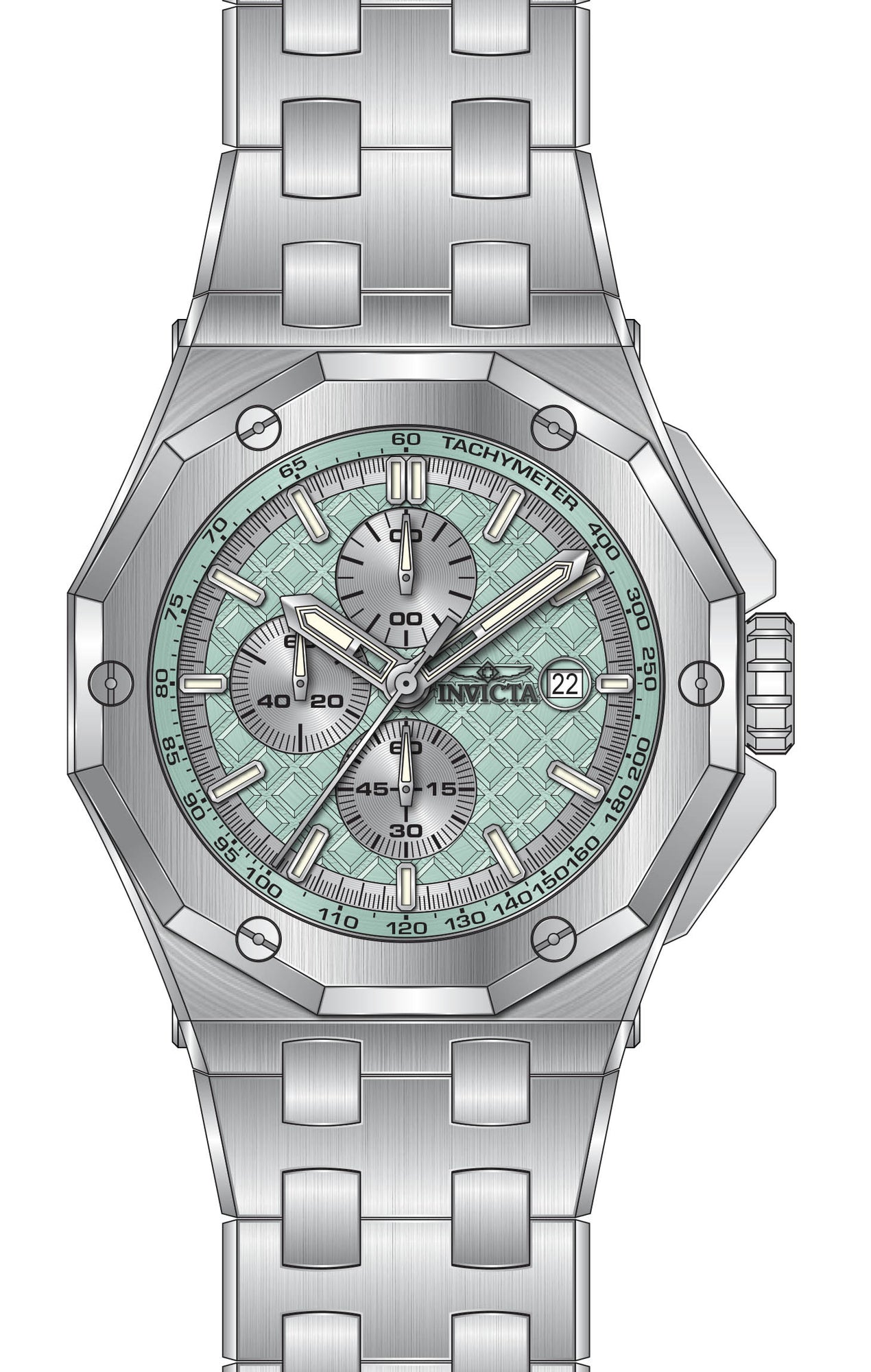 Band Material: Stainless Steel, Band Tone: Steel, Band Width: 28MM, Band Length: 210MM, Crown Type: Push, Case Material: Stainless Steel, Case Tone: Steel, Case Size [mm]: 48.00, Case Back: Solid, Material of Hands: Metal, Color of Hands: Silver,Luminous, Crystal Type: Mineral, Bezel Material: Stainless Steel, Dial Material: Metal, Dial Color: Silver,Turquoise, Dial Pattern: Textured Pattern .Purchasing these parts and having a non-authorized repair center open your watch voids all manufacturing warranties. Invicta cannot guarantee the quality standards of an altered timepiece, the standard 3-year limited warranty on Invicta timepieces shall be invalid if the timepiece is serviced at any time by an unauthorized repair center. This includes battery replacements, which must be done at an Invicta authorized repair center in order to maintain the eligibility of the warranty. Please follow the link below to learn more about Invicta's warranty.https://cdn.invictawatch.com/www/files/invicta-warranty-2018.pdf