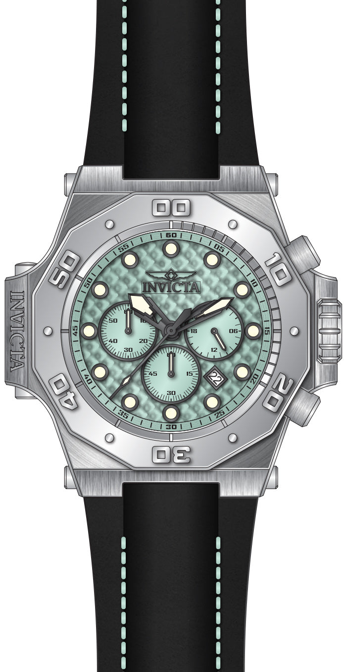 Band Material: Leather, Band Tone: Black, Band Width: 32MM, Band Length: 210MM, Crown Type: Screw Down, Case Material: Stainless Steel, Case Tone: Steel, Case Size [mm]: 58.0, Case Back: Solid, Material of Hands: Metal, Color of Hands: Luminous,Gunmetal, Crystal Type: Mineral, Bezel Material: Stainless Steel, Dial Material: Metal, Dial Color: Turquoise, Dial Pattern: Textured Pattern .Purchasing these parts and having a non-authorized repair center open your watch voids all manufacturing warranties. Invicta cannot guarantee the quality standards of an altered timepiece, the standard 3-year limited warranty on Invicta timepieces shall be invalid if the timepiece is serviced at any time by an unauthorized repair center. This includes battery replacements, which must be done at an Invicta authorized repair center in order to maintain the eligibility of the warranty. Please follow the link below to learn more about Invicta's warranty.https://cdn.invictawatch.com/www/files/invicta-warranty-2018.pdf