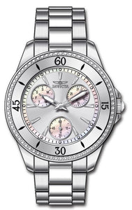 INVICTA Angel Lady 38mm Stainless Steel Steel White+Silver dial VD76 Quartz , Band Material: Stainless Steel, Band Tone: Silver, Band Size [mm]: 18, Band Length [mm]: 172.5, Buckle Type: Fold over push button , Crown Type : Push, Case Material : Stainless Steel, Case Tone : Steel, Case Size (mm) : 38, Case Back : Solid, Material of Hands : Metal, Color of Hands : Silver, Crystal Type : Flame Fusion, Bezel Material : Stainless Steel, Dial Material : Metal,Oyster, Dial Color : White,Silver, Dial Pattern : Sun-ray Finish .Purchasing these parts and having a non-authorized repair center open your watch voids all manufacturing warranties. Invicta cannot guarantee the quality standards of an altered timepiece, the standard 3-year limited warranty on Invicta timepieces shall be invalid if the timepiece is serviced at any time by an unauthorized repair center. This includes battery replacements, which must be done at an Invicta authorized repair center in order to maintain the eligibility of the warranty. Please follow the link below to learn more about Invicta's warranty.https://cdn.invictawatch.com/www/files/invicta-warranty-2018.pdf