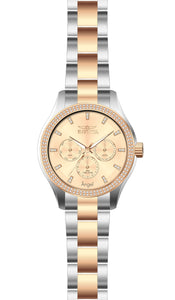 INVICTA Angel Lady 40mm Stainless Steel Rose Gold + Steel Rose Gold dial VH63 Quartz , Band Material: Stainless Steel, Band Tone: Steel,Rose Gold, Band Size [mm]: 18, Band Length [mm]: 205, Buckle Type: Fold over safety , Crown Type : Push, Case Material : Stainless Steel, Case Tone : Rose Gold,Steel, Case Size (mm) : 40, Case Back : Solid, Material of Hands : Metal, Color of Hands : Rose Gold,Luminous, Crystal Type : Flame Fusion, Bezel Material : Stainless Steel, Dial Material : Metal, Dial Color : Rose Gold, Dial Pattern : Sun-ray Finish .Purchasing these parts and having a non-authorized repair center open your watch voids all manufacturing warranties. Invicta cannot guarantee the quality standards of an altered timepiece, the standard 3-year limited warranty on Invicta timepieces shall be invalid if the timepiece is serviced at any time by an unauthorized repair center. This includes battery replacements, which must be done at an Invicta authorized repair center in order to maintain the eligibility of the warranty. Please follow the link below to learn more about Invicta's warranty.https://cdn.invictawatch.com/www/files/invicta-warranty-2018.pdf