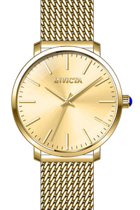 Band Material: Stainless Steel, Band Tone: Gold, Band Width: 18MM, Band Length: 175MM, Crown Type: Push, Case Material: Stainless Steel, Case Tone: Gold, Case Size [mm]: 36, Case Back: Solid, Material of Hands: Metal, Color of Hands: Gold, Crystal Type: Flame Fusion, Bezel Material: Stainless Steel, Dial Material: Metal, Dial Color: Gold, Dial Pattern: Sun-ray Finish .Purchasing these parts and having a non-authorized repair center open your watch voids all manufacturing warranties. Invicta cannot guarantee the quality standards of an altered timepiece, the standard 3-year limited warranty on Invicta timepieces shall be invalid if the timepiece is serviced at any time by an unauthorized repair center. This includes battery replacements, which must be done at an Invicta authorized repair center in order to maintain the eligibility of the warranty. Please follow the link below to learn more about Invicta's warranty.https://cdn.invictawatch.com/www/files/invicta-warranty-2018.pdf