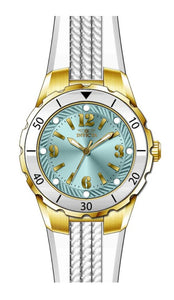 Band Material: Silicone, Band Tone: White, Band Width: 23.5MM, Band Length: 205MM, Crown Type: Push, Case Material: Stainless Steel, Case Tone: Gold, Case Size [mm]: 38, Case Back: Solid, Material of Hands: Brass, Color of Hands: Gold,Luminous, Crystal Type: Mineral, Bezel Material: Stainless Steel,Aluminum, Dial Material: Metal, Dial Color: Tiffany Blue, Dial Pattern: Sun-ray Finish .Purchasing these parts and having a non-authorized repair center open your watch voids all manufacturing warranties. Invicta cannot guarantee the quality standards of an altered timepiece, the standard 3-year limited warranty on Invicta timepieces shall be invalid if the timepiece is serviced at any time by an unauthorized repair center. This includes battery replacements, which must be done at an Invicta authorized repair center in order to maintain the eligibility of the warranty. Please follow the link below to learn more about Invicta's warranty.https://cdn.invictawatch.com/www/files/invicta-warranty-2018.pdf