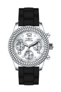 INVICTA Angel Lady 36mm Stainless Steel Steel Silver dial VD54 Quartz , Band Material: Silicone, Band Tone: Black, Band Size [mm]: 18, Band Length [mm]: 195, Buckle Type: Buckle , Crown Type : Push, Case Material : Stainless Steel, Case Tone : Steel, Case Size (mm) : 36, Case Back : Solid, Material of Hands : Metal, Color of Hands : White,Silver, Crystal Type : Flame Fusion, Bezel Material : Stainless Steel, Dial Material : Metal, Dial Color : Silver, Dial Pattern : Sun-ray Finish .Purchasing these parts and having a non-authorized repair center open your watch voids all manufacturing warranties. Invicta cannot guarantee the quality standards of an altered timepiece, the standard 3-year limited warranty on Invicta timepieces shall be invalid if the timepiece is serviced at any time by an unauthorized repair center. This includes battery replacements, which must be done at an Invicta authorized repair center in order to maintain the eligibility of the warranty. Please follow the link below to learn more about Invicta's warranty.https://cdn.invictawatch.com/www/files/invicta-warranty-2018.pdf