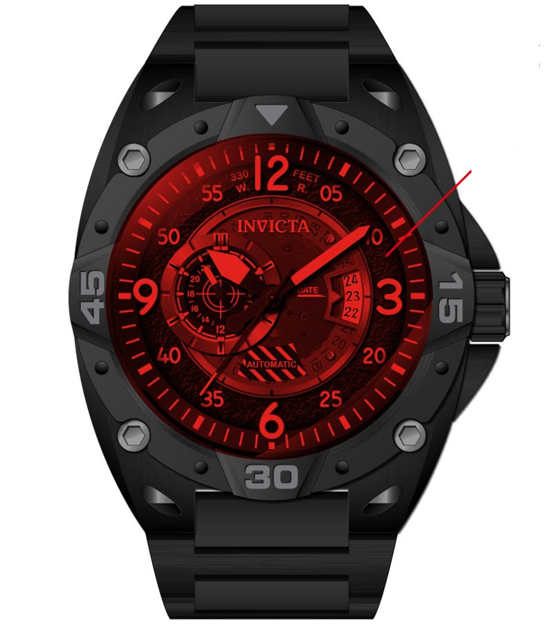 INVICTA Aviator Men 50mm Stainless Steel Black Red dial 8217 Automatic , Band Material: Stainless Steel, Band Tone: Black, Band Size [mm]: 30, Band Length [mm]: 197, Buckle Type: Fold over safety , Crown Type : Push, Case Material : Stainless Steel, Case Tone : Black, Case Size (mm) : 50, Case Back : Exhibition, Material of Hands : Metal, Color of Hands : Black,White, Crystal Type : Flame Fusion, Bezel Material : Stainless Steel, Dial Material : Metal, Dial Color : Red .Purchasing these parts and having a non-authorized repair center open your watch voids all manufacturing warranties. Invicta cannot guarantee the quality standards of an altered timepiece, the standard 3-year limited warranty on Invicta timepieces shall be invalid if the timepiece is serviced at any time by an unauthorized repair center. This includes battery replacements, which must be done at an Invicta authorized repair center in order to maintain the eligibility of the warranty. Please follow the link below to learn more about Invicta's warranty.https://cdn.invictawatch.com/www/files/invicta-warranty-2018.pdf