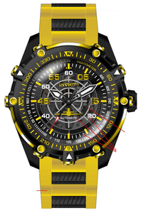 Band Material: Stainless Steel,Silicone, Band Tone: Black,Yellow, Band Width: 26MM, Band Length: 210MM, Crown Type: Push, Case Material: Stainless Steel, Case Tone: Black, Case Size [mm]: 52, Case Back: Exhibition, Material of Hands: Metal, Color of Hands: Black,White, Crystal Type: Flame Fusion, Bezel Material: Stainless Steel, Dial Material: Metal, Dial Color: Black .Purchasing these parts and having a non-authorized repair center open your watch voids all manufacturing warranties. Invicta cannot guarantee the quality standards of an altered timepiece, the standard 3-year limited warranty on Invicta timepieces shall be invalid if the timepiece is serviced at any time by an unauthorized repair center. This includes battery replacements, which must be done at an Invicta authorized repair center in order to maintain the eligibility of the warranty. Please follow the link below to learn more about Invicta's warranty.https://cdn.invictawatch.com/www/files/invicta-warranty-2018.pdf