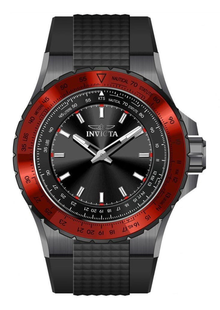 Band Material: Silicone, Band Tone: Black, Band Width: 32.5MM, Band Length: 225MM, Crown Type: Push, Case Material: Stainless Steel, Case Tone: Gunmetal, Case Size [mm]: 50, Case Back: Solid, Material of Hands: Brass, Color of Hands: Silver,Luminous, Crystal Type: Mineral, Bezel Material: Stainless Steel,Aluminum, Dial Material: Brass, Dial Color: Black, Dial Pattern: Sun-ray Finish .Purchasing these parts and having a non-authorized repair center open your watch voids all manufacturing warranties. Invicta cannot guarantee the quality standards of an altered timepiece, the standard 3-year limited warranty on Invicta timepieces shall be invalid if the timepiece is serviced at any time by an unauthorized repair center. This includes battery replacements, which must be done at an Invicta authorized repair center in order to maintain the eligibility of the warranty. Please follow the link below to learn more about Invicta's warranty.https://cdn.invictawatch.com/www/files/invicta-warranty-2018.pdf