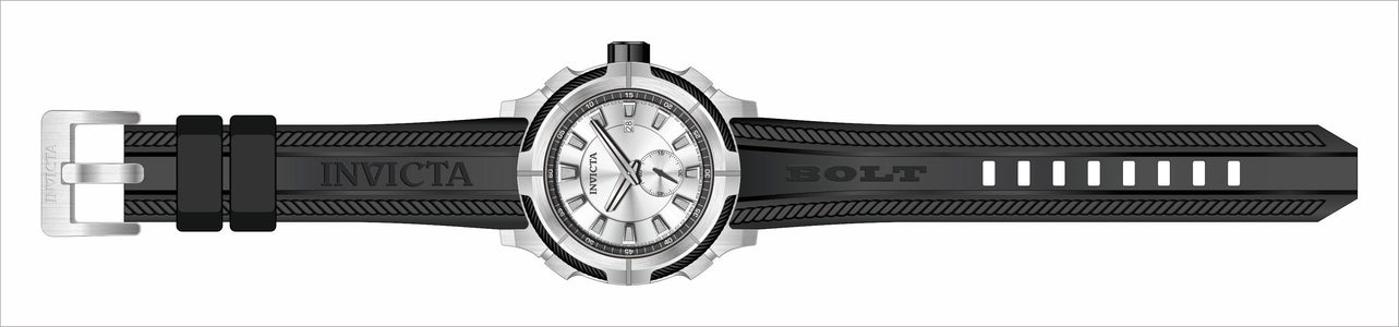 INVICTA Bolt Men 48mm Stainless Steel Black + Steel Silver dial OT45 Quartz , Band Material: Silicone, Band Tone: Black, Band Size [mm]: 24, Band Length [mm]: 220, Buckle Type: Buckle , Crown Type : Push, Case Material : Stainless Steel, Case Tone : Black,Steel, Case Size (mm) : 48, Case Back : Solid, Material of Hands : Metal, Color of Hands : Black,Silver, Crystal Type : Flame Fusion, Bezel Material : Stainless Steel, Dial Material : Metal, Dial Color : Silver, Dial Pattern : None .Purchasing these parts and having a non-authorized repair center open your watch voids all manufacturing warranties. Invicta cannot guarantee the quality standards of an altered timepiece, the standard 3-year limited warranty on Invicta timepieces shall be invalid if the timepiece is serviced at any time by an unauthorized repair center. This includes battery replacements, which must be done at an Invicta authorized repair center in order to maintain the eligibility of the warranty. Please follow the link below to learn more about Invicta's warranty.https://cdn.invictawatch.com/www/files/invicta-warranty-2018.pdf