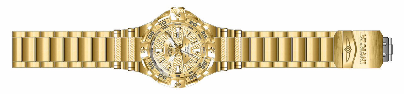 INVICTA Bolt Men 54mm Stainless Steel Gold Gold dial NH35 Automatic , Band Material: Stainless Steel,Glass Fiber, Band Tone: Gold, Band Size [mm]: 32, Band Length [mm]: 190, Buckle Type: Fold over safety , Crown Type : Push, Case Material : Stainless Steel, Case Tone : Gold, Case Size (mm) : 54, Case Back : Solid, Material of Hands : Metal, Color of Hands : Gold, Crystal Type : Flame Fusion, Bezel Material : Stainless Steel,Glass Fiber, Dial Material : Metal,Glass Fiber, Dial Color : Gold .Purchasing these parts and having a non-authorized repair center open your watch voids all manufacturing warranties. Invicta cannot guarantee the quality standards of an altered timepiece, the standard 3-year limited warranty on Invicta timepieces shall be invalid if the timepiece is serviced at any time by an unauthorized repair center. This includes battery replacements, which must be done at an Invicta authorized repair center in order to maintain the eligibility of the warranty. Please follow the link below to learn more about Invicta's warranty.https://cdn.invictawatch.com/www/files/invicta-warranty-2018.pdf