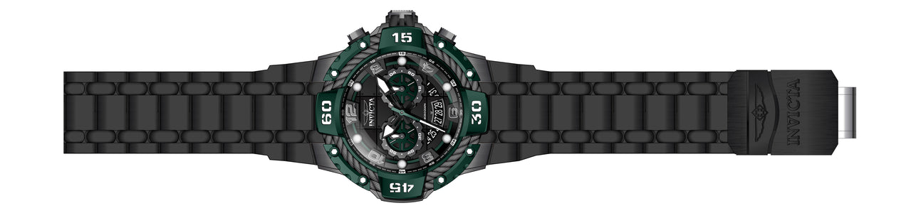 INVICTA Bolt Men 52mm Stainless Steel Black Black+Green dial VK64 Quartz , Band Material: Stainless Steel, Band Tone: Black, Band Size [mm]: 32, Band Length [mm]: 190, Buckle Type: Fold over safety , Crown Type : Push, Case Material : Stainless Steel, Case Tone : Black, Case Size (mm) : 52, Case Back : Solid, Material of Hands : Metal, Color of Hands : Black,White,Green, Crystal Type : Flame Fusion, Bezel Material : Stainless Steel, Dial Material : Metal, Dial Color : Black,Green .Purchasing these parts and having a non-authorized repair center open your watch voids all manufacturing warranties. Invicta cannot guarantee the quality standards of an altered timepiece, the standard 3-year limited warranty on Invicta timepieces shall be invalid if the timepiece is serviced at any time by an unauthorized repair center. This includes battery replacements, which must be done at an Invicta authorized repair center in order to maintain the eligibility of the warranty. Please follow the link below to learn more about Invicta's warranty.https://cdn.invictawatch.com/www/files/invicta-warranty-2018.pdf