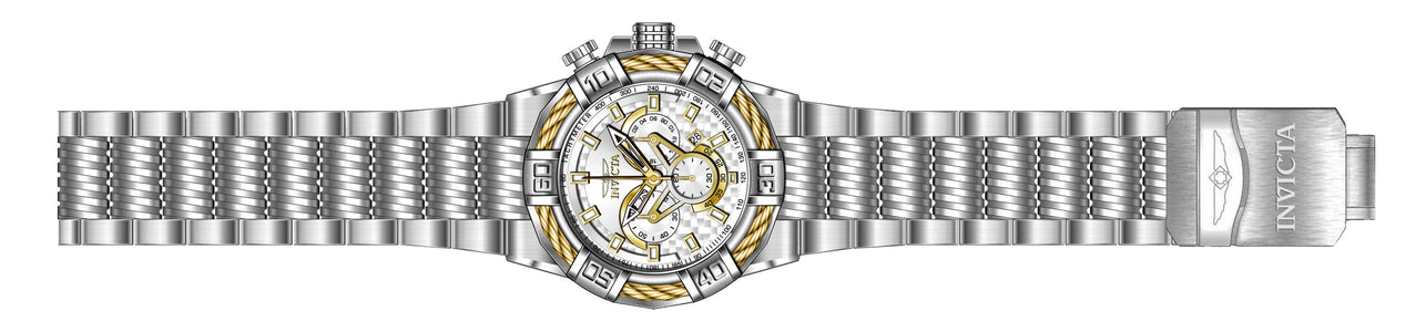 INVICTA Bolt Men 52mm Stainless Steel Steel White dial VD53 Quartz , Band Material: Stainless Steel, Band Tone: Steel, Band Size [mm]: 30, Band Length [mm]: 185, Buckle Type: Fold over safety , Crown Type : Push, Case Material : Stainless Steel, Case Tone : Steel, Case Size (mm) : 52, Case Back : Solid, Material of Hands : Metal, Color of Hands : Gold, Crystal Type : Flame Fusion, Bezel Material : Stainless Steel,Cable, Dial Material : Glass Fiber, Dial Color : White, Dial Pattern : Textured Pattern .Purchasing these parts and having a non-authorized repair center open your watch voids all manufacturing warranties. Invicta cannot guarantee the quality standards of an altered timepiece, the standard 3-year limited warranty on Invicta timepieces shall be invalid if the timepiece is serviced at any time by an unauthorized repair center. This includes battery replacements, which must be done at an Invicta authorized repair center in order to maintain the eligibility of the warranty. Please follow the link below to learn more about Invicta's warranty.https://cdn.invictawatch.com/www/files/invicta-warranty-2018.pdf