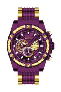 INVICTA Bolt Men 52mm Stainless Steel Purple Purple dial VD54 Quartz , Band Material: Stainless Steel,Silicone, Band Tone: Gold,Purple, Band Size [mm]: 26, Band Length [mm]: 185, Buckle Type: Buckle , Crown Type : Push, Case Material : Stainless Steel, Case Tone : Purple, Case Size (mm) : 52, Case Back : Solid, Material of Hands : Metal, Color of Hands : White,Gold,Purple, Crystal Type : Flame Fusion, Bezel Material : Stainless Steel,Cable, Dial Material : Metal, Dial Color : Purple, Dial Pattern : Sun-ray Finish .Purchasing these parts and having a non-authorized repair center open your watch voids all manufacturing warranties. Invicta cannot guarantee the quality standards of an altered timepiece, the standard 3-year limited warranty on Invicta timepieces shall be invalid if the timepiece is serviced at any time by an unauthorized repair center. This includes battery replacements, which must be done at an Invicta authorized repair center in order to maintain the eligibility of the warranty. Please follow the link below to learn more about Invicta's warranty.https://cdn.invictawatch.com/www/files/invicta-warranty-2018.pdf