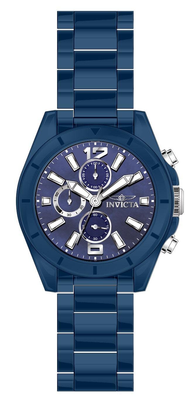 Band Material: Ceramic, Band Tone: Blue, Band Width: 22MM, Band Length: 183MM, Crown Type: Push, Case Material: Ceramic, Case Tone: Blue, Case Size [mm]: 44.5, Crystal Type: Flame Fusion, Dial Material: Mother of Pearl, Dial Color: Blue .Purchasing these parts and having a non-authorized repair center open your watch voids all manufacturing warranties. Invicta cannot guarantee the quality standards of an altered timepiece, the standard 3-year limited warranty on Invicta timepieces shall be invalid if the timepiece is serviced at any time by an unauthorized repair center. This includes battery replacements, which must be done at an Invicta authorized repair center in order to maintain the eligibility of the warranty. Please follow the link below to learn more about Invicta's warranty.https://cdn.invictawatch.com/www/files/invicta-warranty-2018.pdf