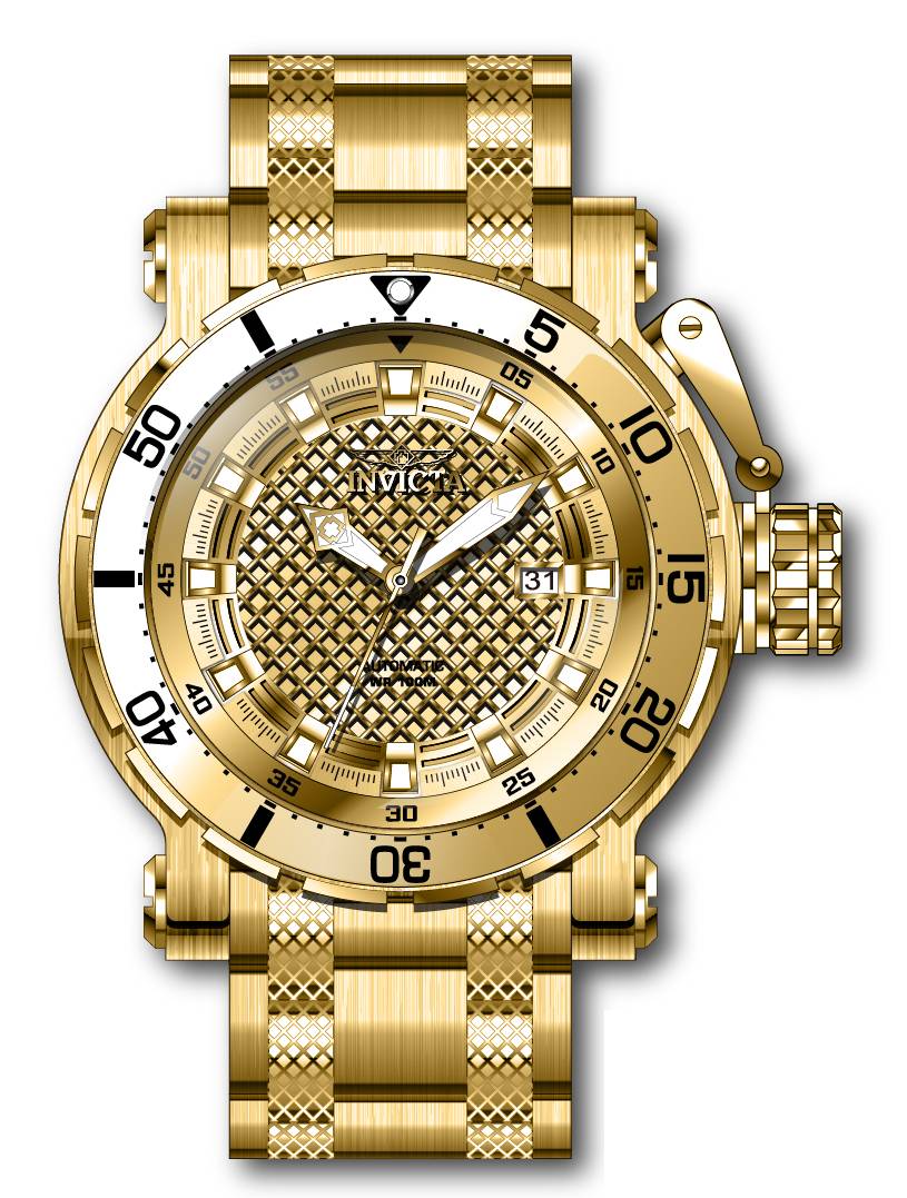 Band Material: Stainless Steel, Band Tone: Gold, Band Width: 26MM, Band Length: 185MM, Crown Type: Push, Case Material: Stainless Steel, Case Tone: Gold, Case Size [mm]: 52, Case Back: Solid, Material of Hands: Metal, Color of Hands: Gold, Crystal Type: Flame Fusion, Bezel Material: Stainless Steel, Dial Material: Metal, Dial Color: Gold, Dial Pattern: Textured Pattern .Purchasing these parts and having a non-authorized repair center open your watch voids all manufacturing warranties. Invicta cannot guarantee the quality standards of an altered timepiece, the standard 3-year limited warranty on Invicta timepieces shall be invalid if the timepiece is serviced at any time by an unauthorized repair center. This includes battery replacements, which must be done at an Invicta authorized repair center in order to maintain the eligibility of the warranty. Please follow the link below to learn more about Invicta's warranty.https://cdn.invictawatch.com/www/files/invicta-warranty-2018.pdf